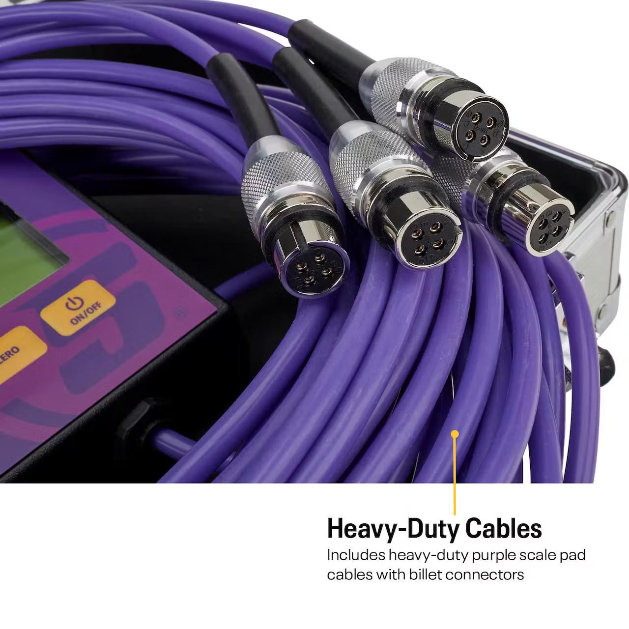 • Includes heavy-duty purple scale pad cables with billet connectors