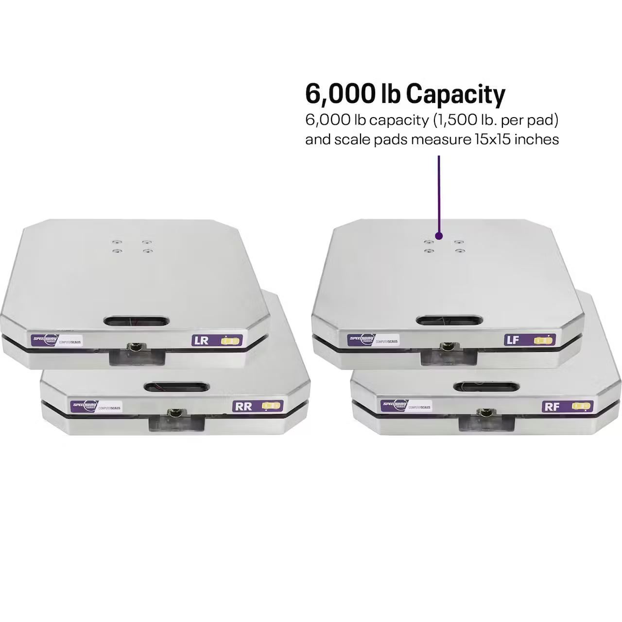 • 6,000 lb capacity (1,500 lb. per pad), scale pads measure 15×15 inches and fit into included storage case along with connectors