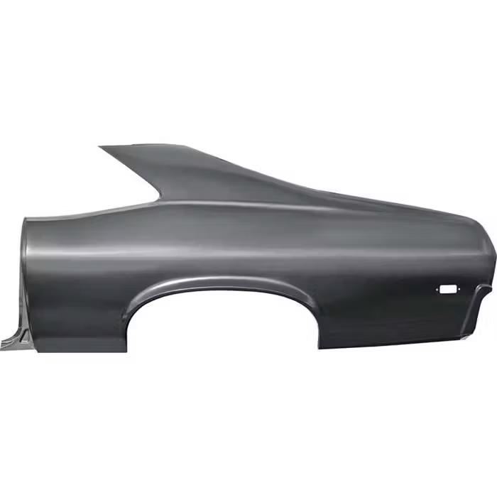 Reproduction quarter panel assembly with integral sail panel, door jamb area, reinforced bumper bracket area, and correct side marker cut-outs for 1968-69 models. One-piece design reduces bodywork needed for installation. Careful attention is paid to packing & shipping to eliminate damages. These panels will fit 2 door coupe models only.