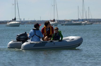 Achilles HB-270AL inflatable boat is a great option for beach landing and launching. With an aluminum hull, this hypalon RIB offers maximum durability, life expectancy, and performance. Lightweight at 98 pounds, but able to handle up to an eight horsepower outboard, the boat should be able to plane with 2-3 persons and is capable of a load of 4 persons or 990 pounds.
