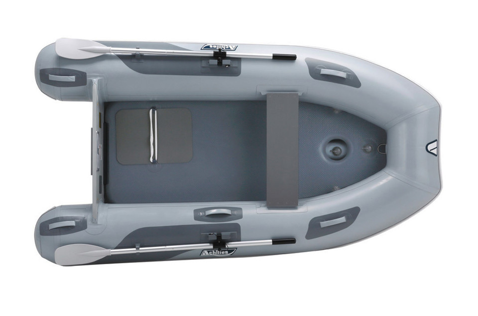 Achilles hypalon reinforced fabric, removable Achilles hypalon high pressure drop stitch air floor, fold down locking oar system, full length rub strake, bow carry handle, towing D-rings, interior bow lifting D-ring (except LSI-230E), removable wood seat, bailer valve, high volume foot pump with pressure gauge, protective pad for gas tank, air keel, carry bag, and maintenance kit