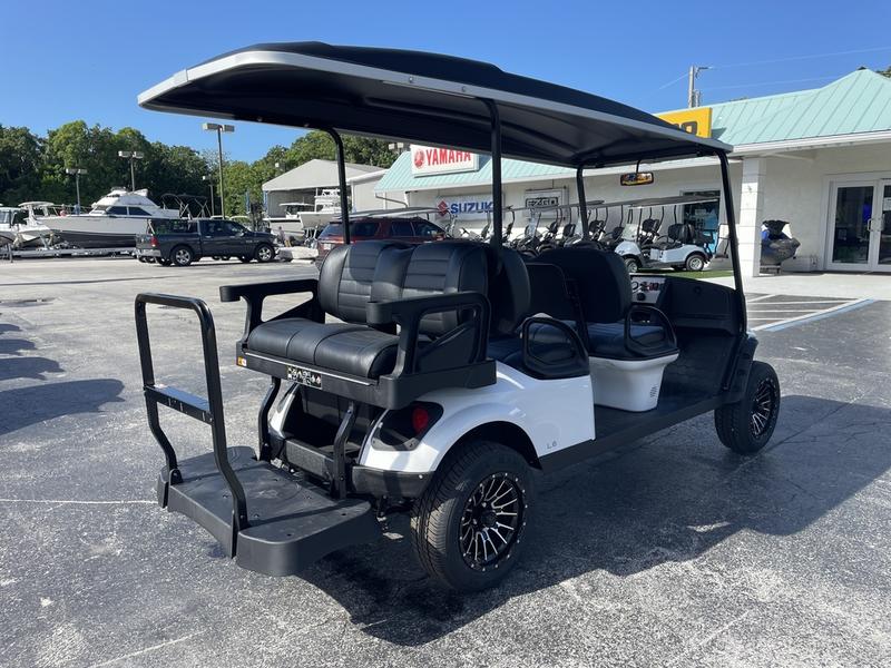 • Buy this 2023 EZ‑GO Express L6 gas golf car – a powerful and spacious 6-seater in bright white, designed for courses, resorts, campuses, and easy transportation.