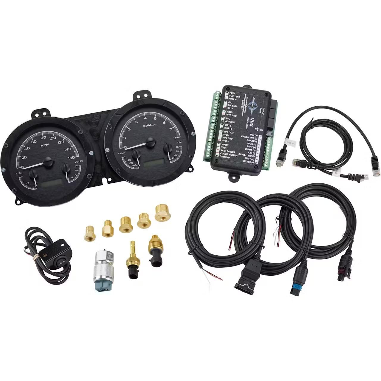 Fully lit needles, backlit faces, and highly visible LCD message centers are a few of the things that you can see which set the VHX Series apart from yesterday’s traditional approach to instrumentation. A few of the features which you don’t normally see are the micro-controlled precision stepper motors, solid-state sensors for unparalleled accuracy, and user-customizable display feedback, all supported by an unrivaled limited lifetime warranty which has become the standard for Dakota Digital instrumentation systems. Completely engineered and manufactured at their facility in Sioux Falls, South Dakota, the VHX Series has completely revolutionized the instrumentation industry!
