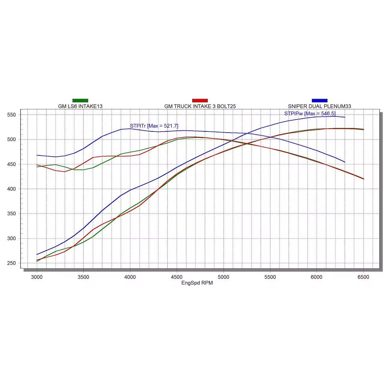 The unique look of this intake will surely stand out from the crowd!Our latest release of fabricated “Dual Plenum” intake manifolds for GM LS1/2/6 and LS3/L92 engines. This unique design of utilizing two plenums solves two common problems experienced with many intakes increased airflow and even dispersion of air to intake ports.The use of one tapered plenum to accommodate one bank of cylinders accomplishes both problems. The entire volume of incoming air is distributed to only four cylinders and the tapered shape of the plenum help increased air velocity directed to each of the intake runner ports. Our dual plenum design features extremely long 12-3/4″ runners to develop low-end torque making this intake an ideal “street” intake.These intake are finished in our familiar silver and black anodized finishes for durability and good looks. Our 3/8″ fuel rail kit include a laser engrave Sniper logo and are capable of supporting 750+ horsepower.