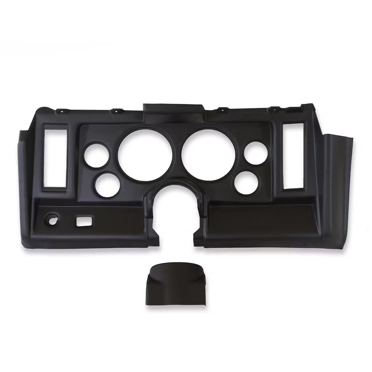 New reproduction instrument cluster bezel for all 1969-72 (will fit 73-74 with modifications) Nova models with air conditioning and with seat belt warning light. Manufactured in black injection molded ABS plastic with chrome trim as original.
