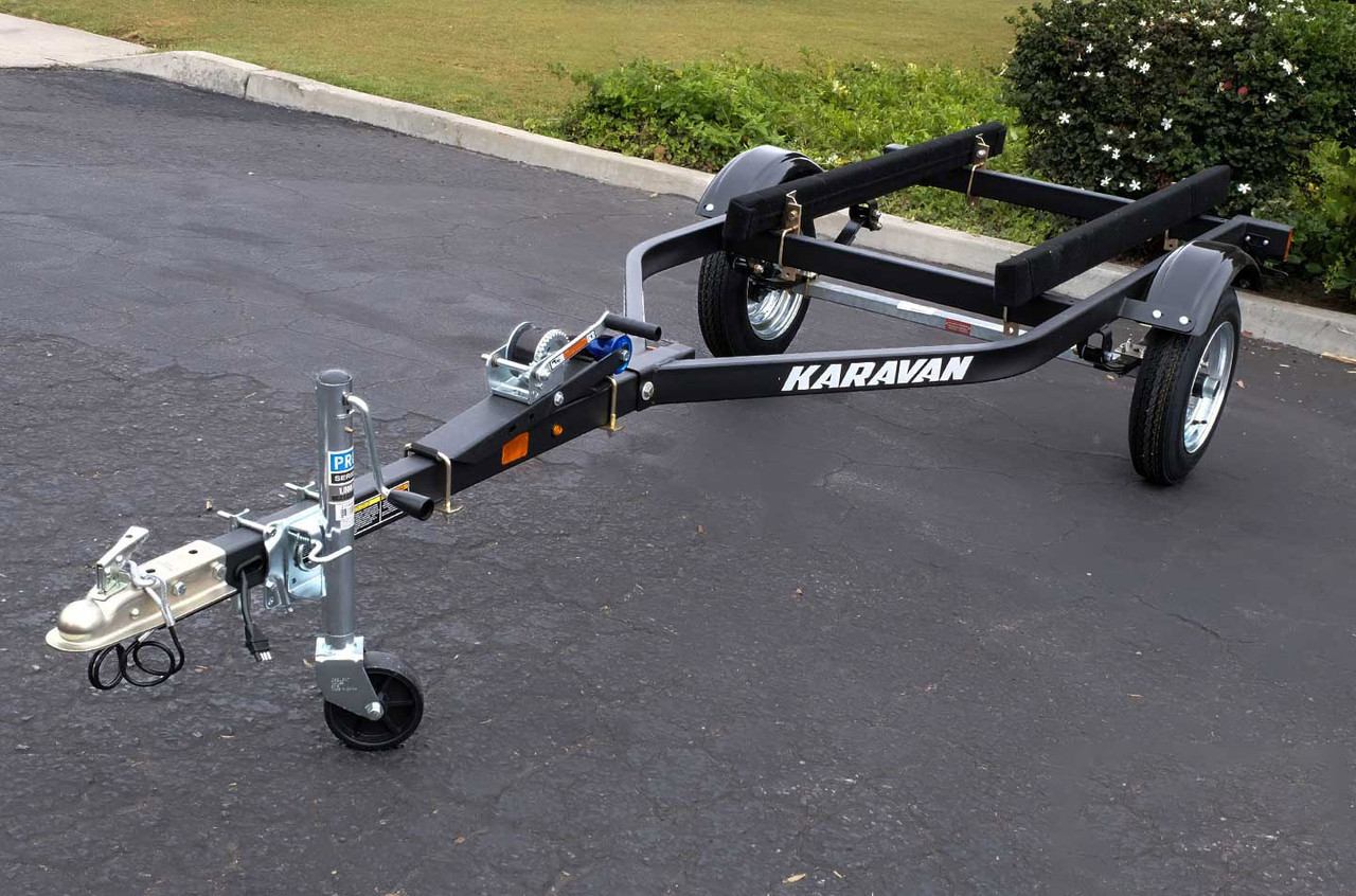 WCE-1500-46-L Karavan’s single watercraft trailers available in powder coated textured black. Tubular frame with adjustable winch and bunks systems allow you to make necessary adjustments to the trailer for a custom fit to your watercraft.