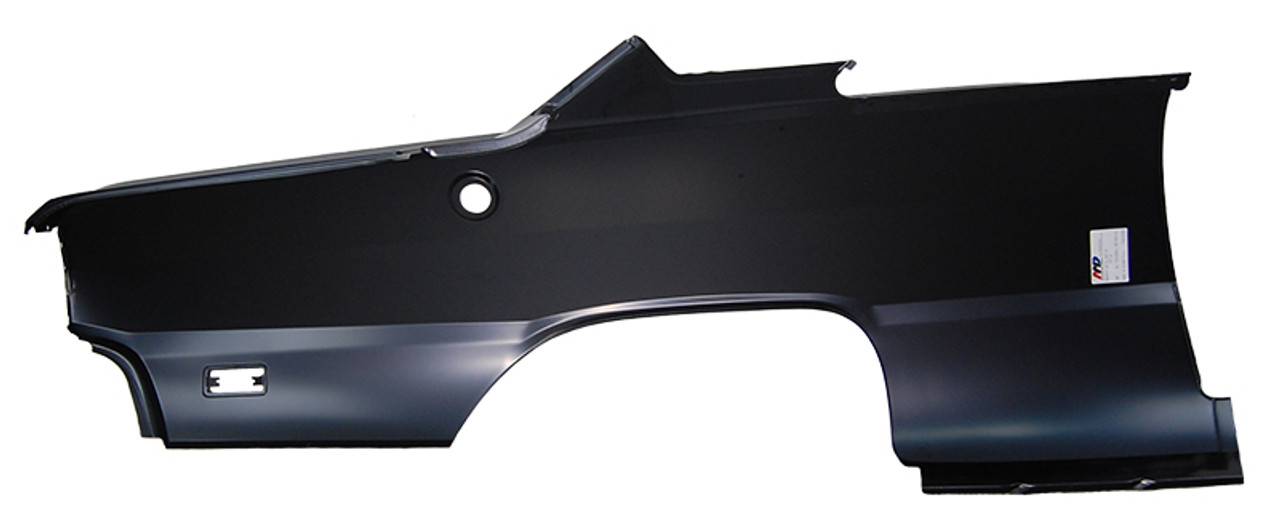 manufactured from high quality, heavy gauge steel on exclusive new tooling and feature, depending on application, correct as original body lines, braces, marker light holes, and antenna cut-out. unlike lesser quality competitors parts, amd quarter panels look great and fit even better! like all amd parts, this quarter panel will arrives in a black edt coat finish and will require standard prep work prior to paint.