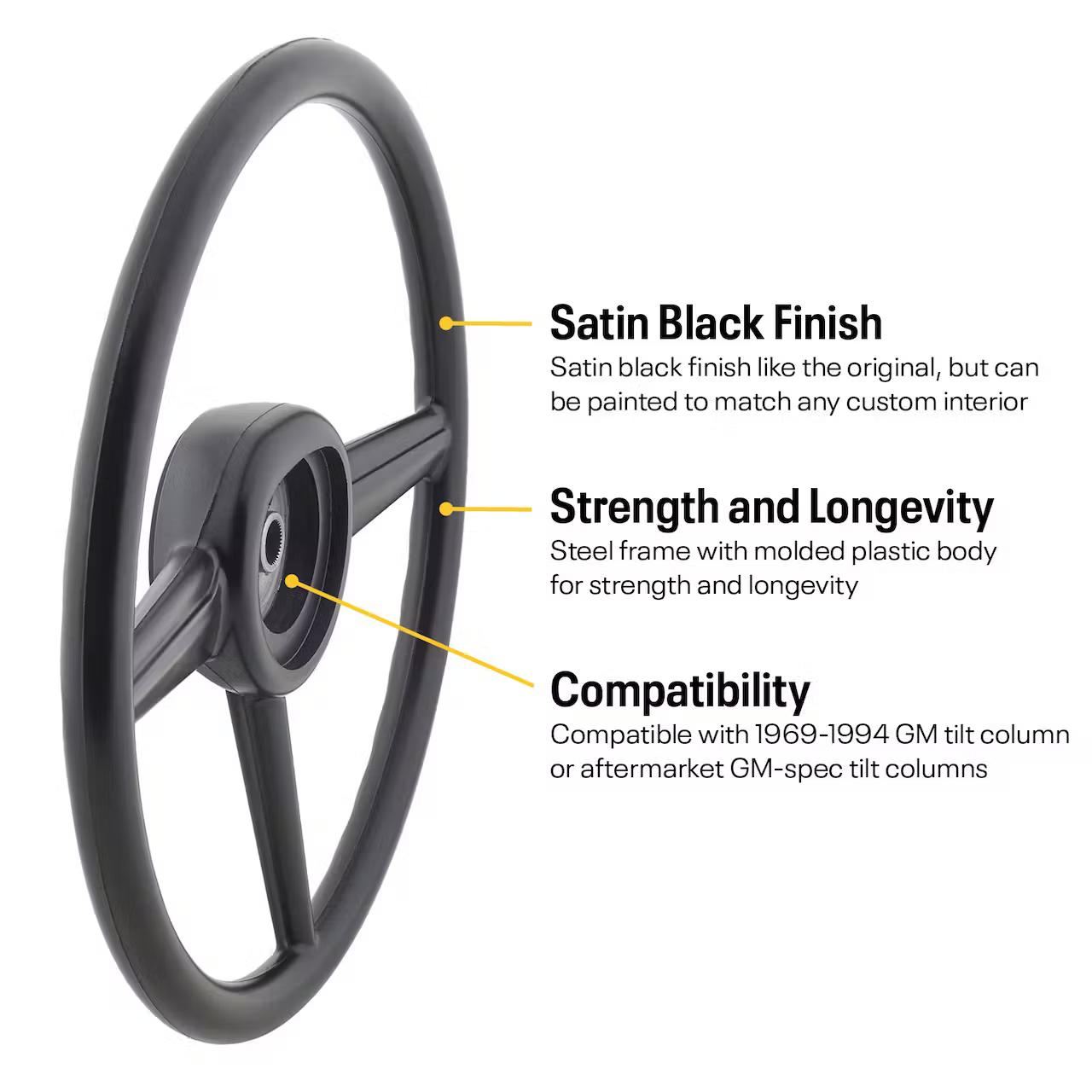 Safety is always in the forefront of all MPI products. The inner structure has been engineered to deform under elevated impacts, absorbing the load and reducing the effect on the drivers upper body, offering an engineered safety advantage. The inner foam injection has been developed to have the highest vibration absorption rate in the industry. The special oval shaped grip makes holding the wheel a natural feel for the driver. The new aluminum D shaped structure features a unibody with no horn button for increase rigidity and durability and a flat bottom for extra leg room and easy exit adding a sporty look to the unit.