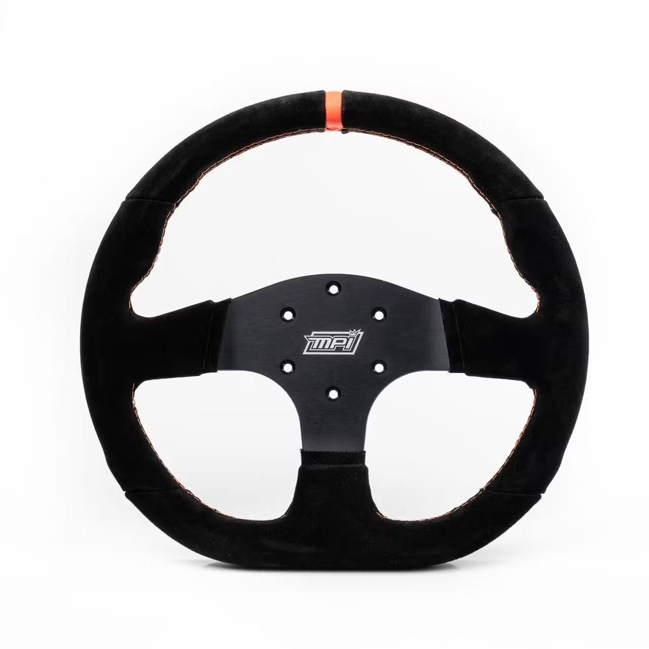 Suede covering and its parallel MPI Orange™ hand stitched finish, give a very high grip feel, reducing the effort needed to hold the wheel while increasing driver feeling and giving a sporty look. It is a preferred material for track and tuning use.