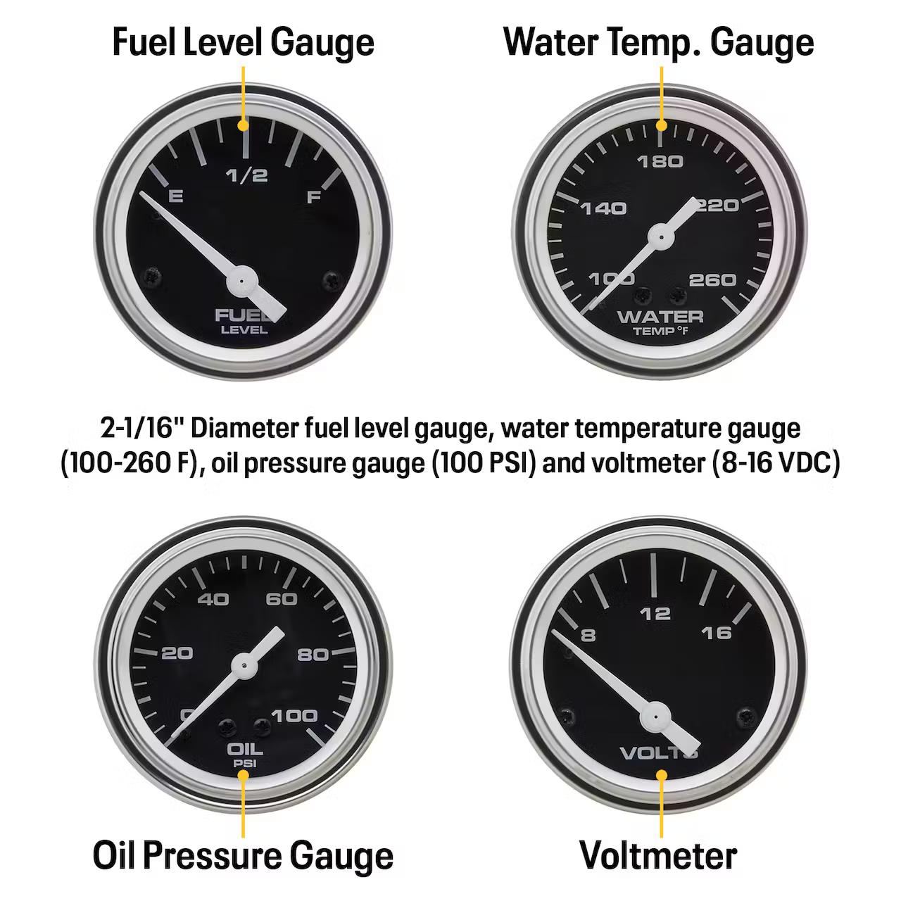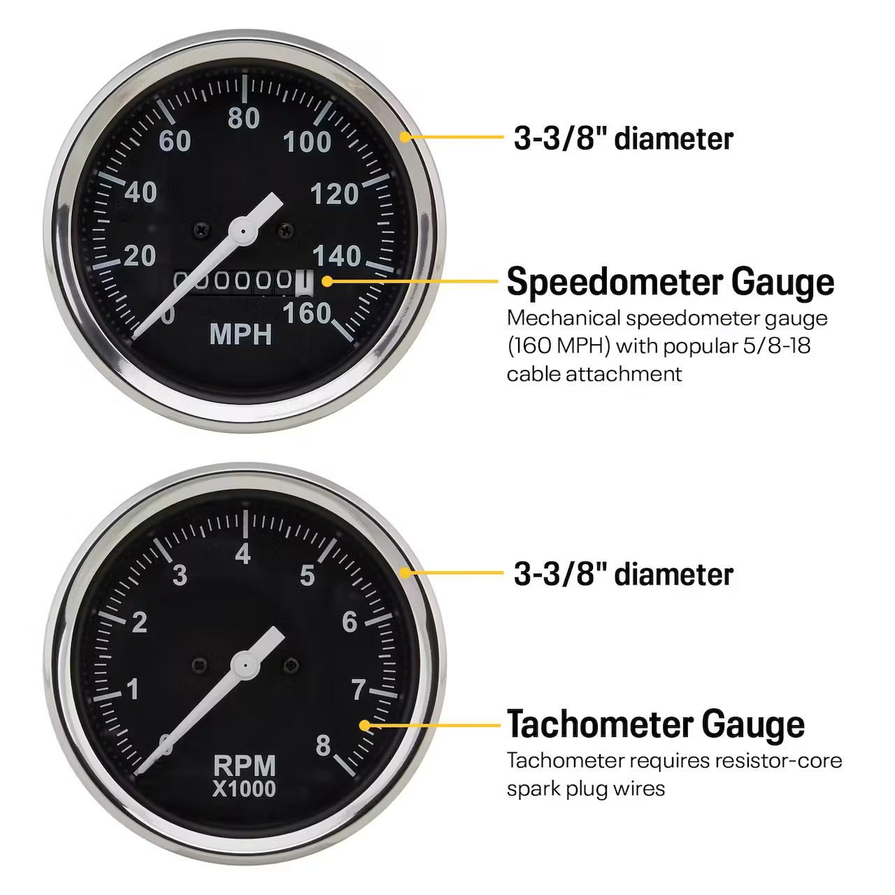 Speedway 6-Gauge Set, Black Face, 3-3/8, Mechanical