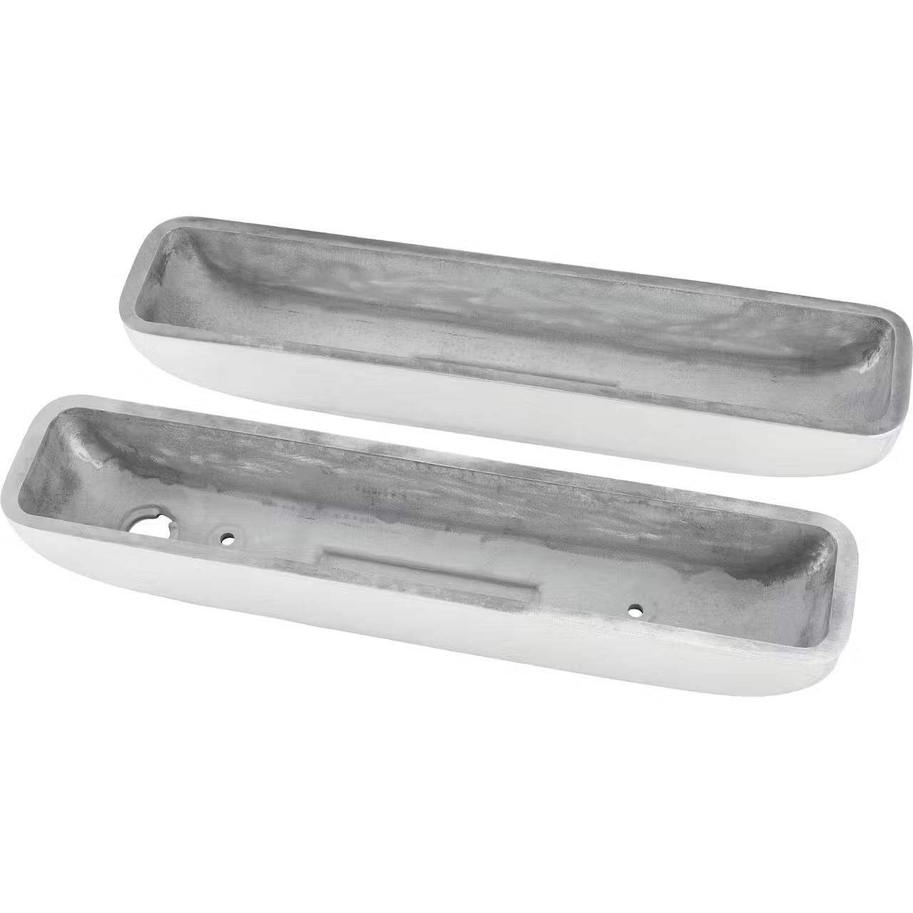 These rugged Offenhauser aluminum valve covers give classic good looks to lots of Hot Rod power plants! The sides, ends and fins have all received the “polisher’s touch”. Cast aluminum design also helps reduce noise and dissipate heat versus stock valve covers. One cover includes a hole for a breather/filler cap.