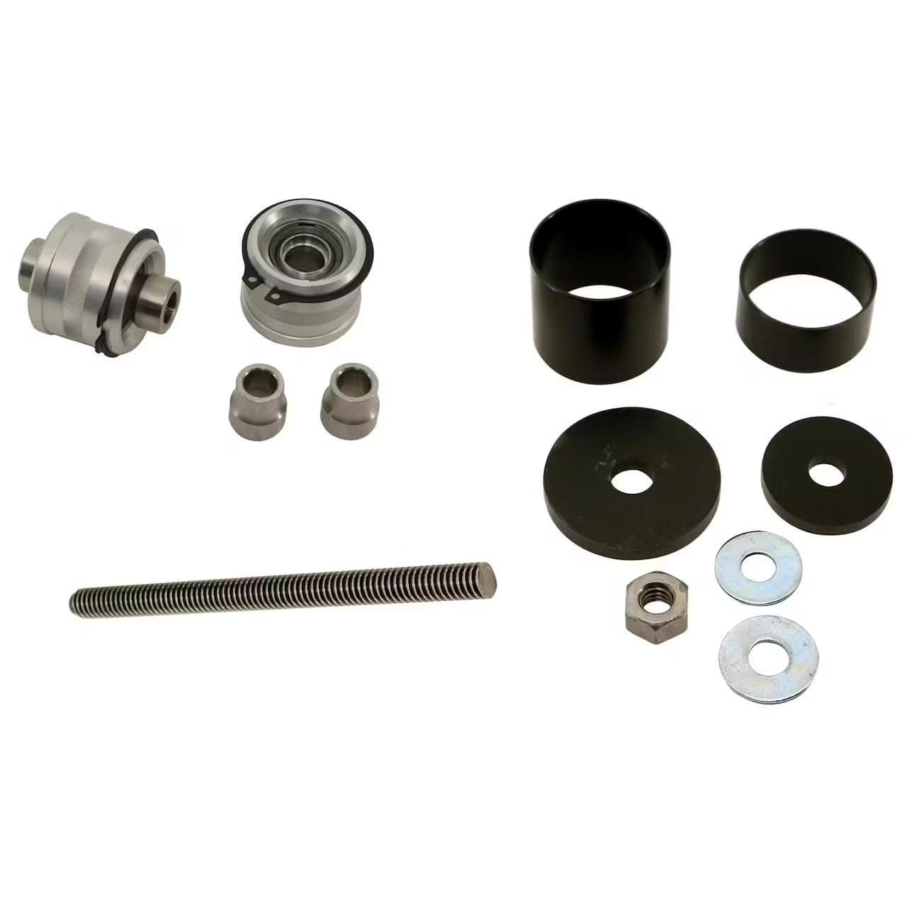 Upper StrongArms feature corrected ball joint angles for the tall spindles. The upper ball joints have been moved back to allow for additional caster setting to improve high speed stability and steering feel. Offset slugs are also available for additional caster. Injection molded Delrin bushings with 13% Teflon are used to reduce deflection and stiction.