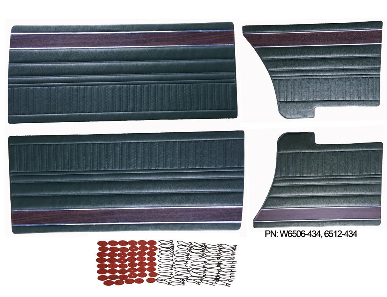 W6506 Mopar 1972 Duster 340 and Dart Swinger Scamp Front and Rear Woodgrain Door Panel Set