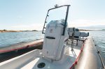 Deep V-shaped hull, 1 bow mooring cleat, 2 stern mooring cleats, 1 bow ring, central hold, 20 gal intergrated fuel tank with water/fuel separator, bow locker with separate compartments: anchor locker + removable storage bin, navigation lights, 2 aft lockers, removable bow storage box, fiberglass console with bolster seat, dual digital gauges, bilge pump, battery cut off, 2 paddles, foot pump, pressure gauge, repair kit, owner’s manual